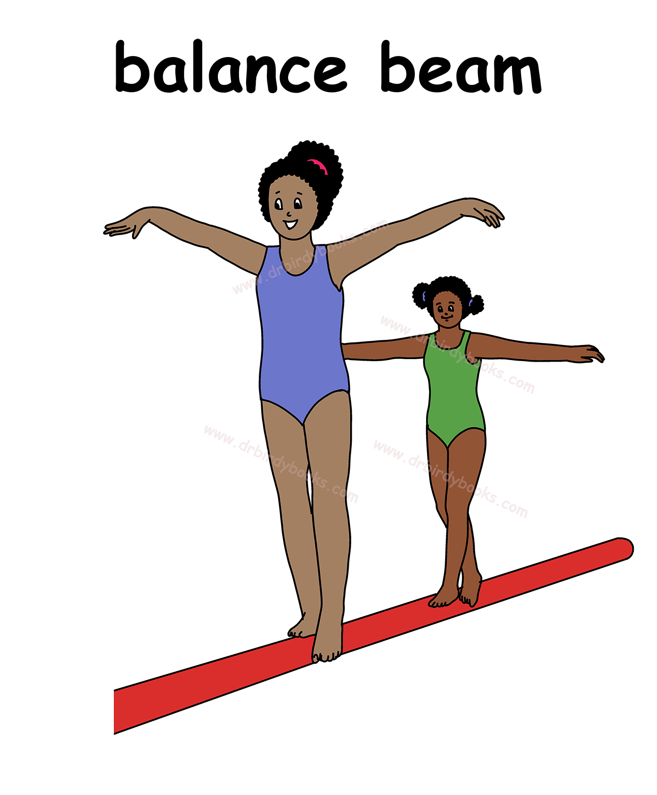 Tags: actions, balance, balance beam, equipment, exercise, exercises, gymnastics, Health, Nouns, occupations, Olympics, People, People and Jobs, sports, Sports Equipment, verbs
